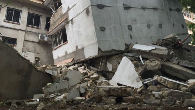 Sehemu ya jumba hilo la Nyali Centre, yenye ghorofa sita, iliporomoka usiku wa kuamkia Jumatatu.