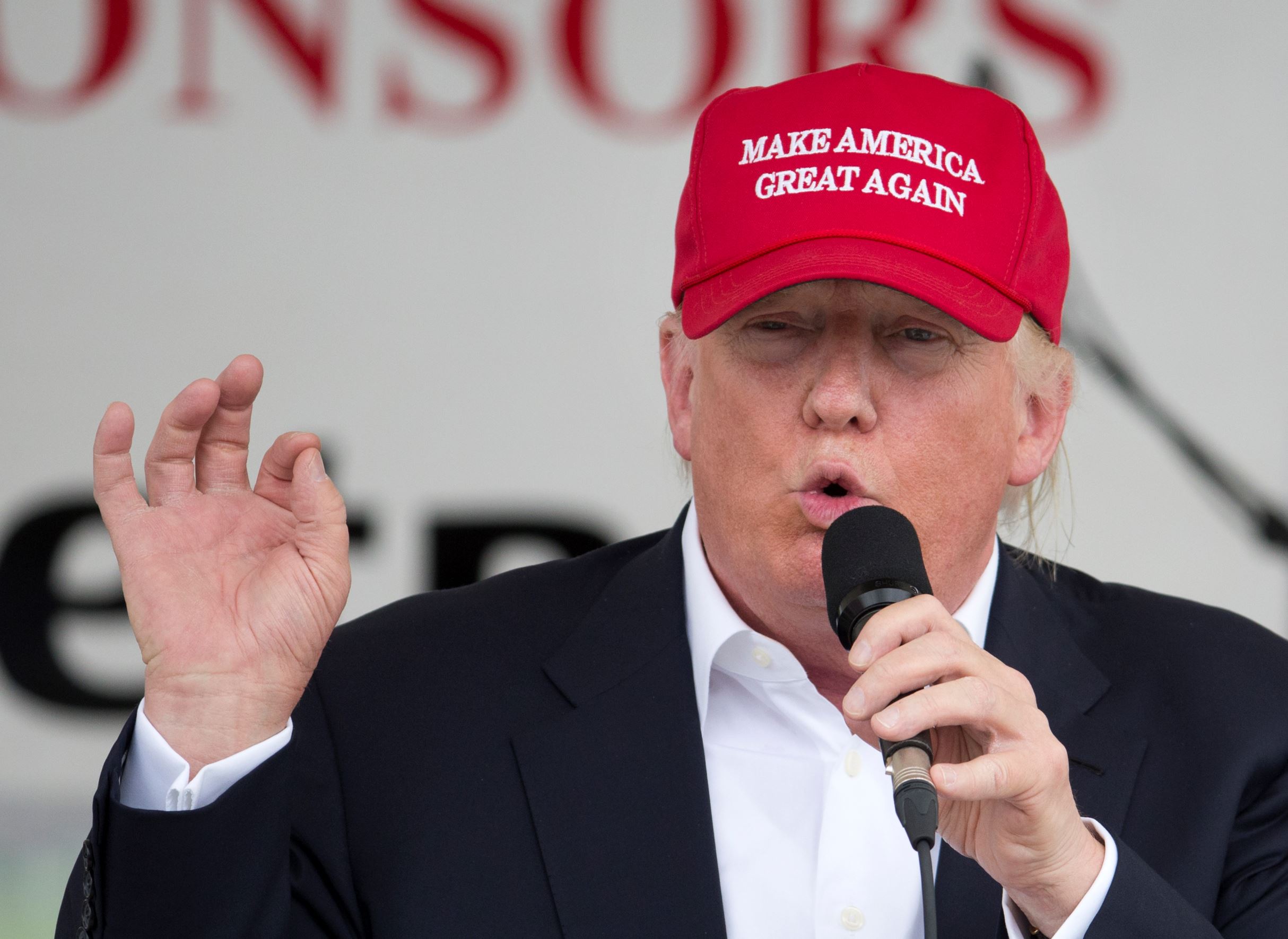 Republican presidential candidate Donald Trump speaks to supporters and bikers at a Rolling Thunder rally at the National Mall in Washington, Sunday, May 29, 2016.
